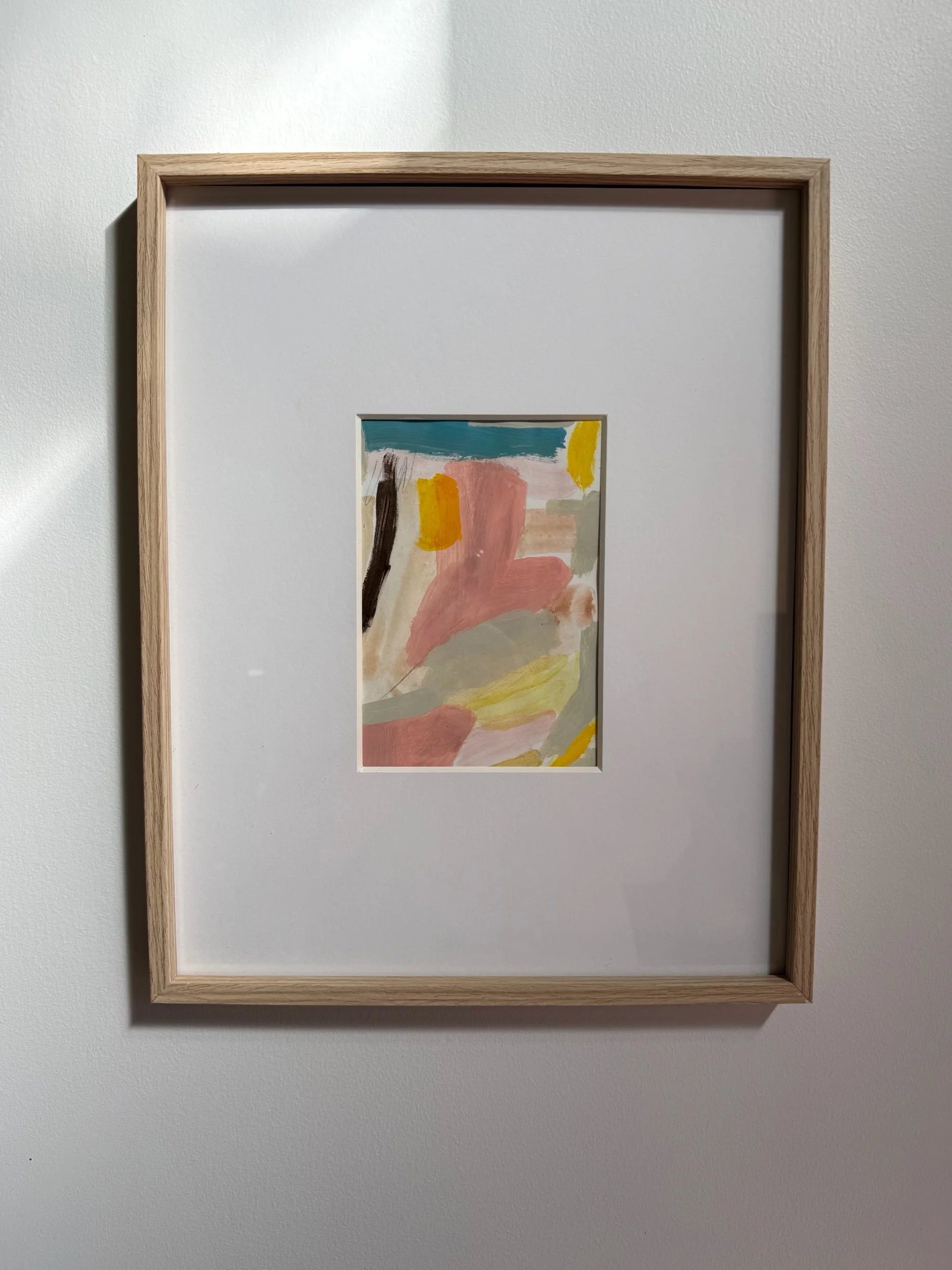 Shop › Husks and Shells Image 1 of 2 Image 2 of 2 Husks and Shells $150.00 Original art on paperAcrylic paint Pink, brown, yellow, pencil 5 x 7 image 8 x 10 frame with mat Quantity: Add To Cart Added! Original art on paperAcrylic paint Pink, brown, yellow, pencil 5 x 7 image 8 x 10 frame with mat